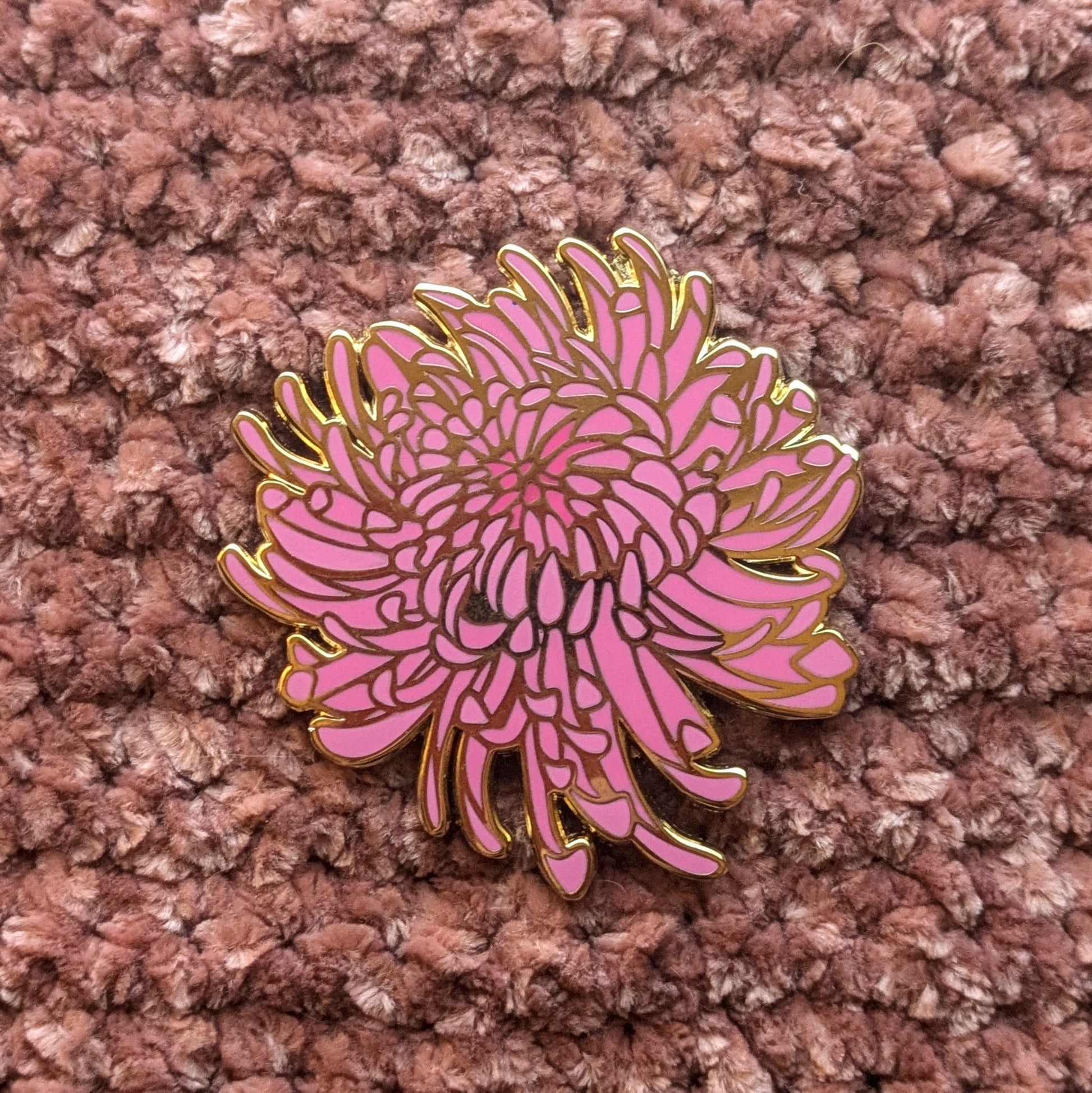 Would you pick a blue or pink Chrysanthemum Enamel Pin?